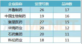 通過(guò)或視同通過(guò)一致性評(píng)價(jià)品種TOP6企業(yè)