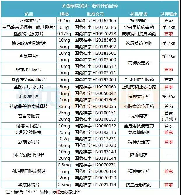 齊魯制藥通過(guò)一致性評(píng)價(jià)的品種情況