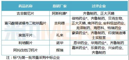 據(jù)米內(nèi)網(wǎng)數(shù)據(jù),齊魯制藥17個(gè)過(guò)評(píng)品種中,鹽酸特比萘芬片、奧氮平口崩片、鹽酸昂丹司瓊片、來(lái)那度胺膠囊、氨磺必利片、利培酮口腔崩解片、華法林鈉片目前為獨(dú)家通過(guò)一致性評(píng)價(jià)。其中,吉非替尼片、富馬酸替諾福韋二吡呋酯片、奧氮平片、利培酮片、阿托伐他汀鈣片等5個(gè)為“4+7”品種。