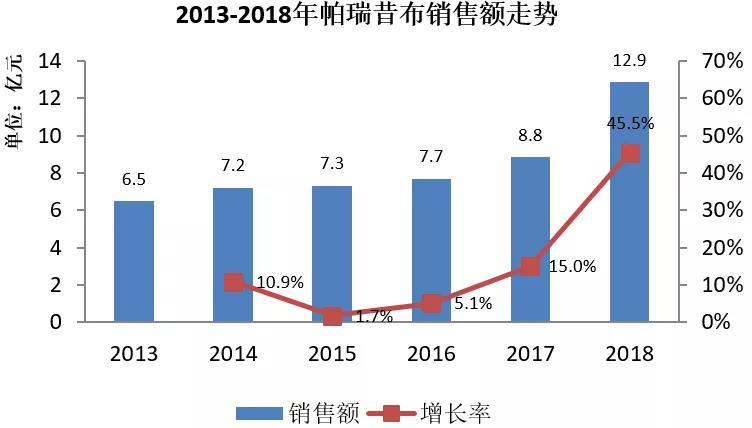 米內(nèi)網(wǎng)數(shù)據(jù)顯示,2018年注射用帕瑞昔布鈉銷售額為12.9億元,同比增長45%。
